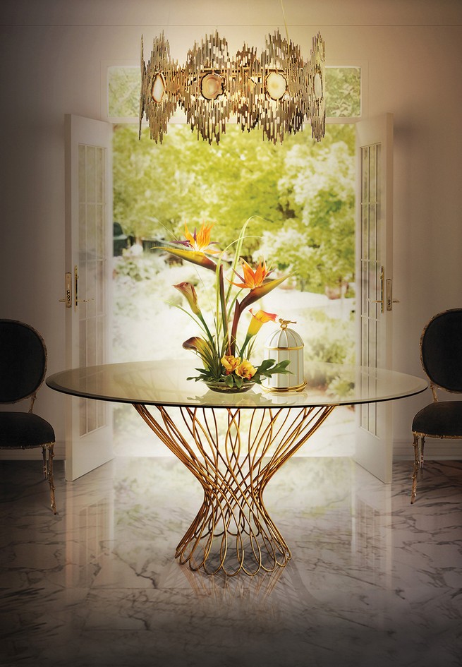 The Vivre chandelier offers exquisite vintage details with a decidedly modern profile. The dark neutral tones and the exquisite patterns go to perfection with Allure dining table.