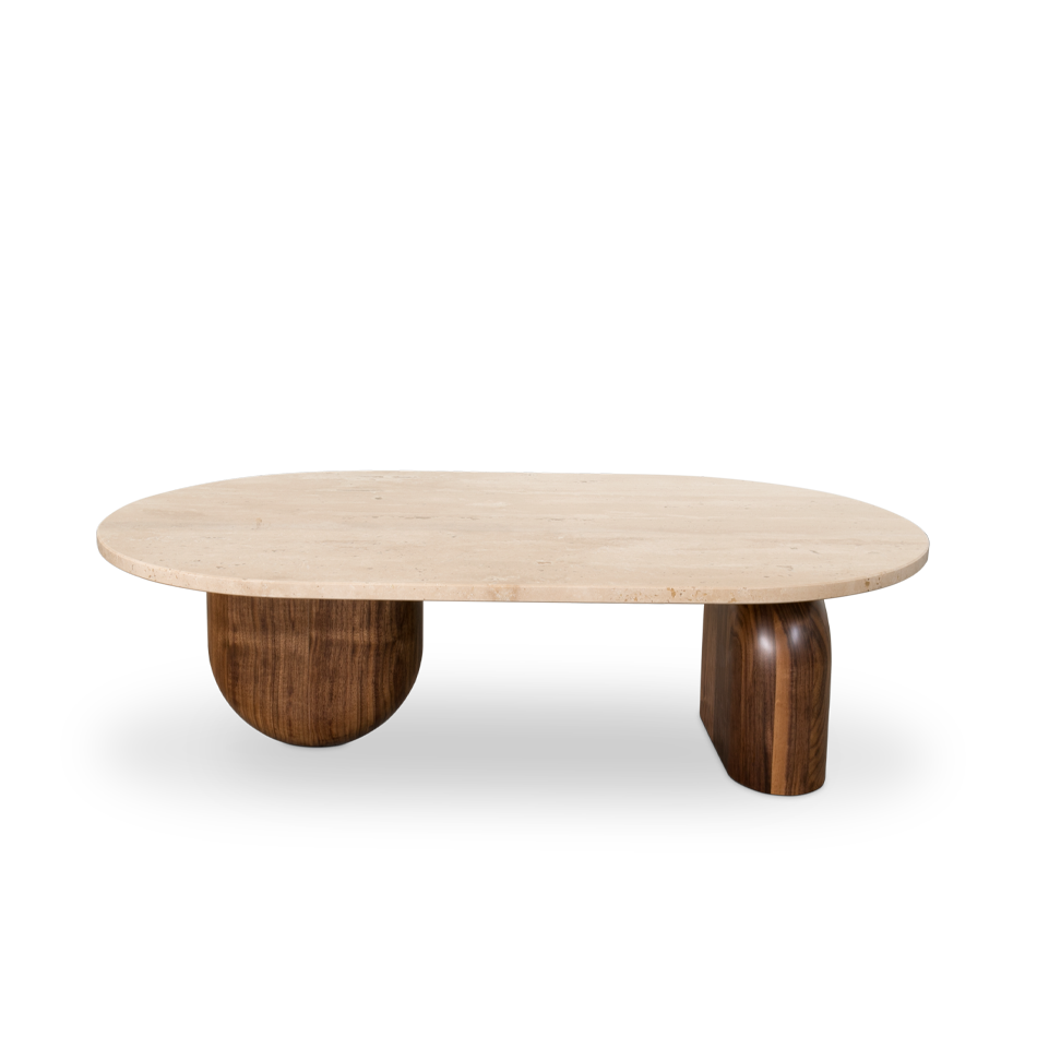 Get to know this timeless living room design with luxury furnishings of the new Happy Few collections designed by Essential Home in partnership with Studiopepe. A seating area with the strong presence of the Zelda family with both Zelda small armchairs and the Zelda sofa upholstered in the finest textile with a brass body. To support the seating space, there’s the Philip long center table and the Philip side table, both made of wood and beautiful travertine stone. Both brass Brubeck XL wall lamps, as well as the white-shaded Laine suspension lamp from DelightFULL give the whole ambiance that extra glow.